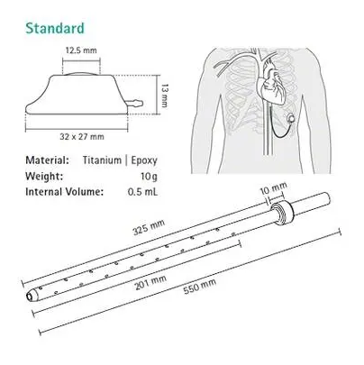 - Надежное соединение катетера с портом осуществляется при помощи титанового рентгеноконтрастного кольца