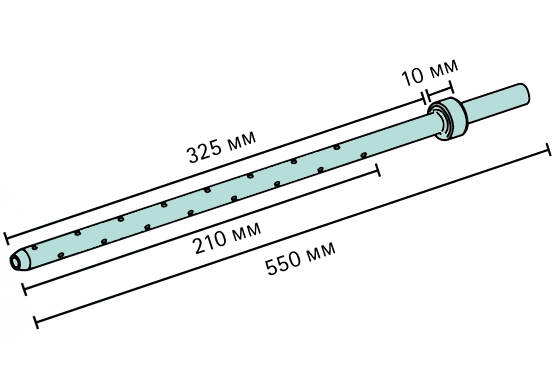 - Силиконовый перфорированный катетер имеет 49 овальных отверстий (ø 1,1 х 1,6 мм), расположенных на 20-сантиметровом участке от дистального конца катетера. Это исключает вероятность блока катетера и обеспечивает максимальную эффективность его работы.
