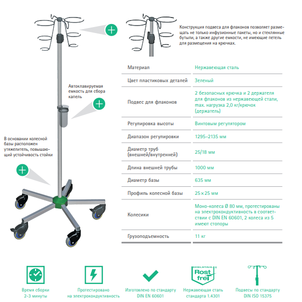 Provita (Провита) — инфузионная гравитационная стойка из нержавеющей стали со стандартной базой от производителя Б. Браун
