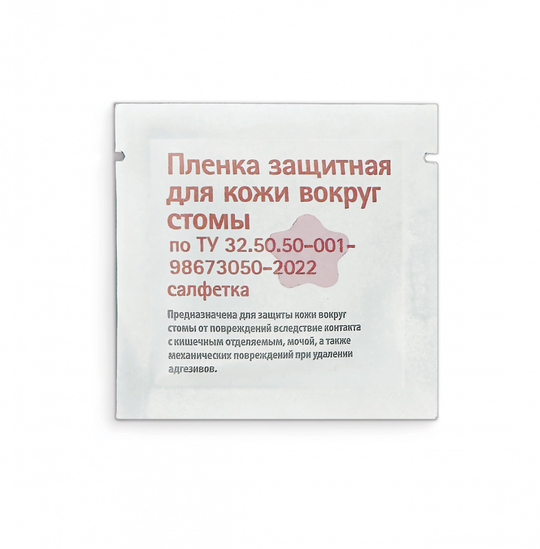 Нанесенная на кожу пленка создает защитный барьер, предохраняющий кожу от контакта с выделениями из стомы и травмировании при отклеивании калоприемников. Салфетка не вызывает жжения, защищает кожу от повреждений при контакте с выделениями из стомы и механической травмы при отклеивании калоприемников. Это средство образует на коже тонкую воздухопроницаемую пленку, защищающую ее от повреждения. Пленка быстро высыхает, не наслаивается на коже, не препятствует приклеиванию калоприемников (уроприемников).