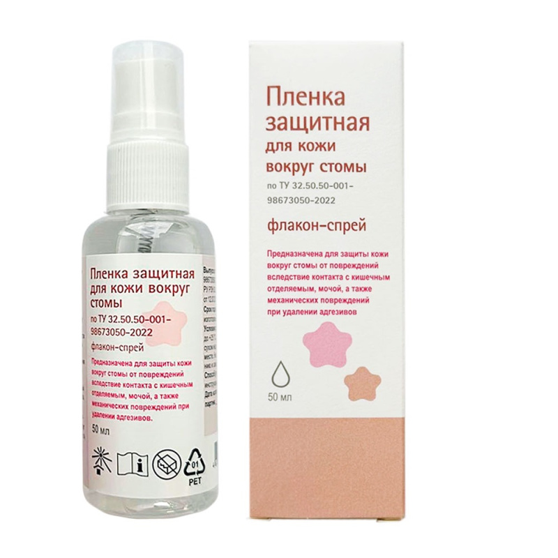 Нанесенная на кожу пленка создает защитный барьер, предохраняющий кожу от контакта с выделениями из стомы и травмировании при отклеивании калоприемников. Спрей не вызывает жжения, защищает кожу от повреждений при контакте с выделениями из стомы и механической травмы при отклеивании калоприемников. Это средство образует на коже тонкую воздухопроницаемую пленку, защищающую ее от повреждения. Пленка быстро высыхает, не наслаивается на коже, не препятствует приклеиванию калоприемников (уроприемников).