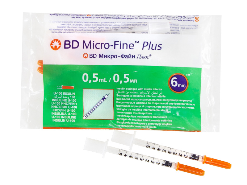 BD Micro-Fine Plus Шприцы инсулиновые Микро-Файн Плюс 0,5 ml U-100 с несъемной иглой 31Gх6мм, 10 шт.