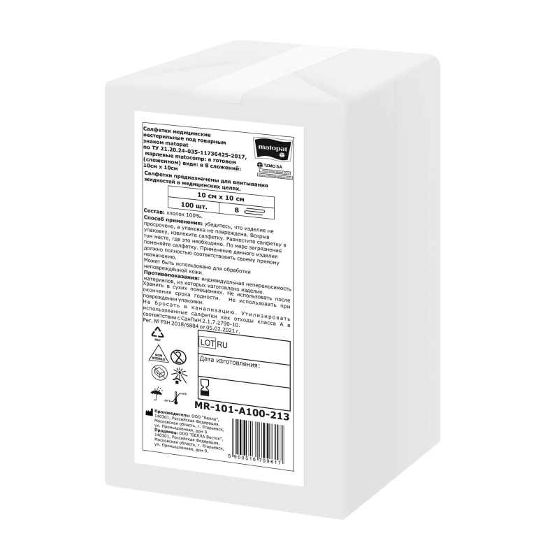 Matocomp (Матокомп) Салфетки марлевые нестерильные: 8 слоев; в упаковке 100 штук под товарным знаком Matopat (Матопат) от производителя Белла Восток