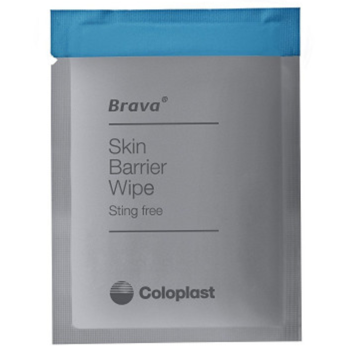 Защитная пленка Brava для защиты кожи от повреждений вследствие ношения калоприемников и агрессивного воздействия мочи, кала и адгезивов в салфетках от производителя Колопласт (Дания)