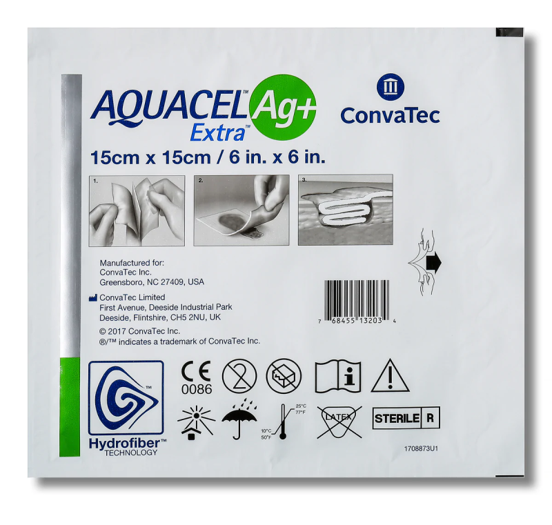 Convatec Aquacel Ag+ Extra Повязка Аквасель Экстра Плюс с серебром и усиленным волокном Гидрофайбер, 15x15 см