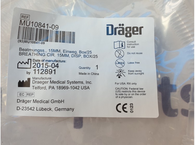 Draeger Дыхательные шланги для Resuscitaire с AutoBreath одноразовые, 15 мм, 25 штук
