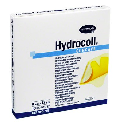 Специальные самофиксирующиеся гидроколлоидные повязки для лечения ран (стерильные) HYDROCOLL concave (Гидроколл конкейв) на область локтей и пяток: 8 х 12 см от Хартманн