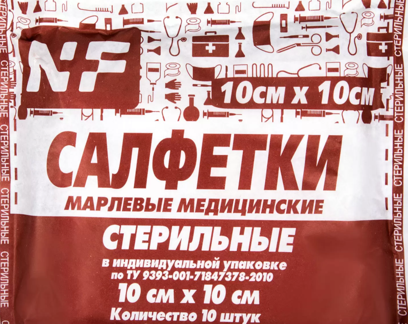 В упаковке 10 стерильных салфеток