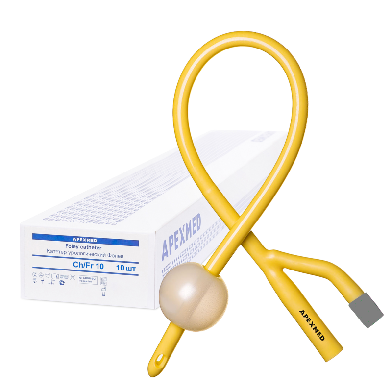 Одноразовый стерильный катетер Фолея двуходовой силиконизированный латексный от Апексмед