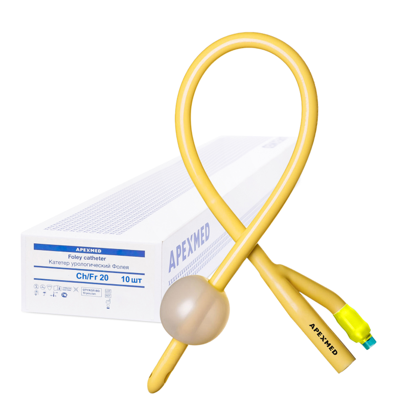 Одноразовый стерильный катетер Фолея двуходовой силиконизированный латексный от Апексмед
