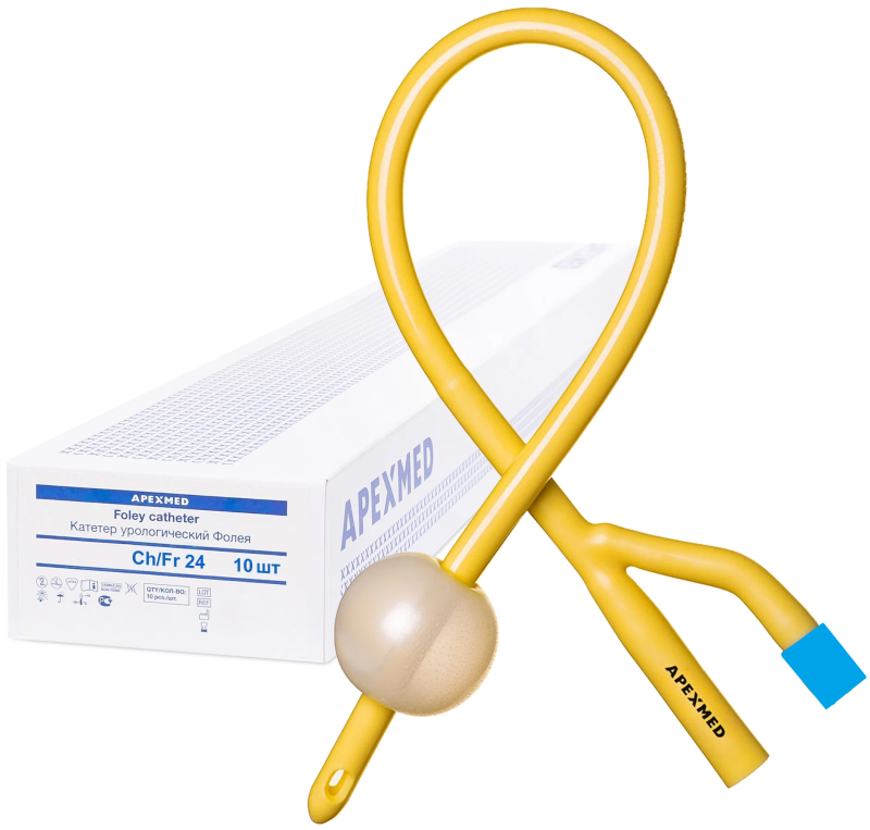 Одноразовый стерильный катетер Фолея двуходовой силиконизированный латексный от Апексмед