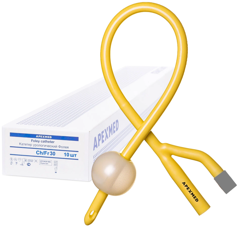 Катетеры Фолея 2х-ходовые силиконизированные латексные, CH/Fr 30, 10 штук - Apexmed