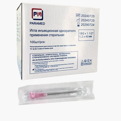Paramed Иглы инъекционные 18G (1,20 х 40 мм), 100 штук
