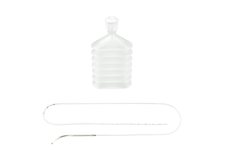Набор для дренирования ран Редон мини состоит из гармошки для сбора раневого отделяемого, коннектора, дренажа и троакара. Разрежение создается путем сжимания «гармошки» руками.