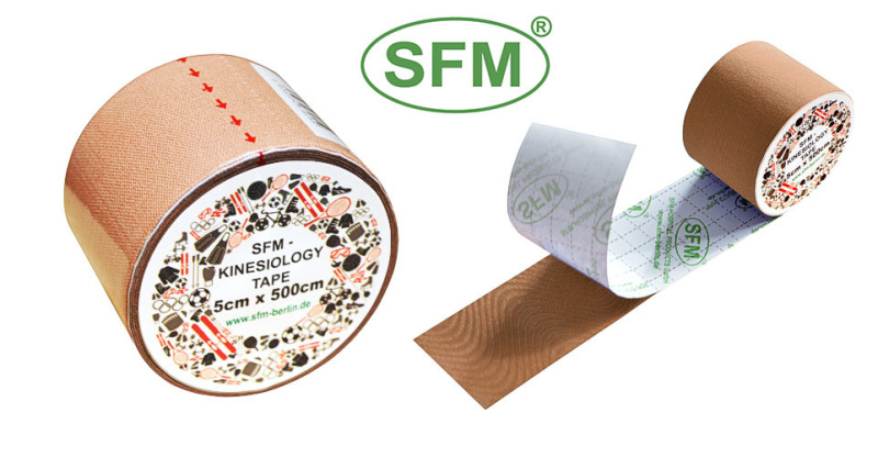 Для профилактики различных мышечных и суставных травм, отеков и снятия болевого синдрома, фиксации суставов, мышц, сухожилий и восстановления нарушенной функции пораженного участка тела приклеивается на кожу, она обеспечивает поддержку мышц, сохраняя полную подвижность, улучшают кровообращение и лимфоток. Допускается их длительное применение: восстановительный эффект обеспечивается 24 часа в сутки в течение 3-4 дней. Ленты кинезио тейп SFM могут использоваться вместе с другими видами терапии, например, криотерапией, лазеротерапией, гидротерапией, массажем и электростимуляцией, лечебной физкультурой