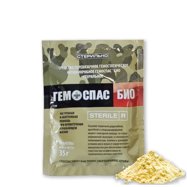 Гемоспас® БИО - порошок кровоостанавливающий для остановки наружного артериовенозного и капиллярного кровотечений в гранулах, 15 г. в индивидуальной упаковке от прозводителя МДК-МЕДИКА
