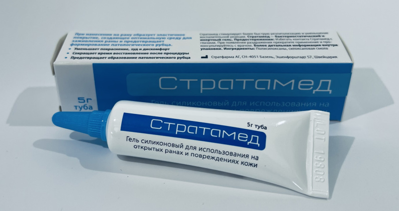 Stratamed можно использовать сразу после процедур (на открытые раны, ожоги и участки с нарушенной целостностью кожи) и позволяет раньше начать процесс рубцевания.